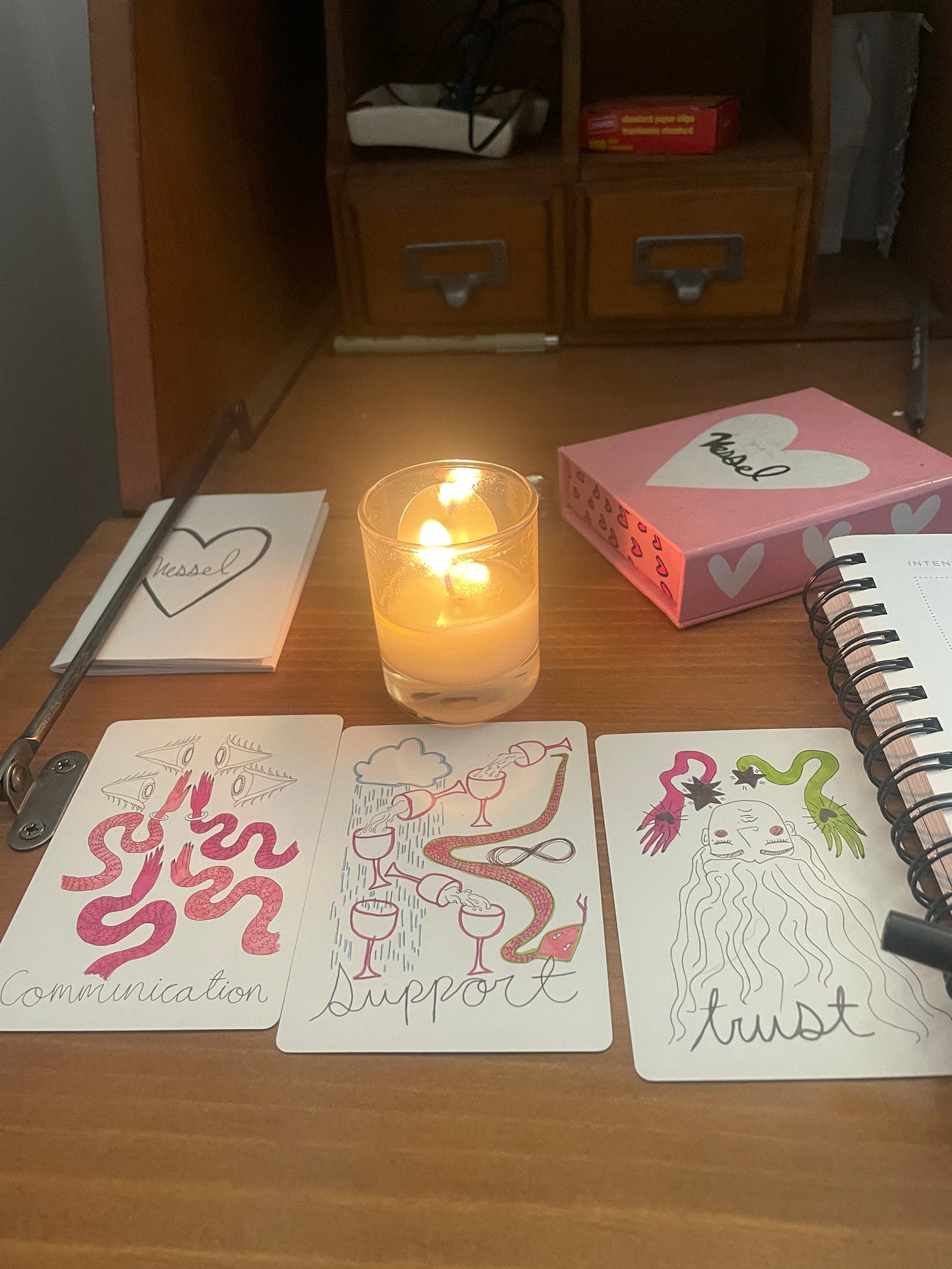 The last couple of years I have carved out some intentional time to practice tarot and journal at the end of the year. I lit a candle at my desk and pulled 3 cards to be a compass for me in 2024. And i’ll be honest, my initial reaction was that these ones weren’t very “fun”, but symbolize areas of growth that feel painful and necessary.